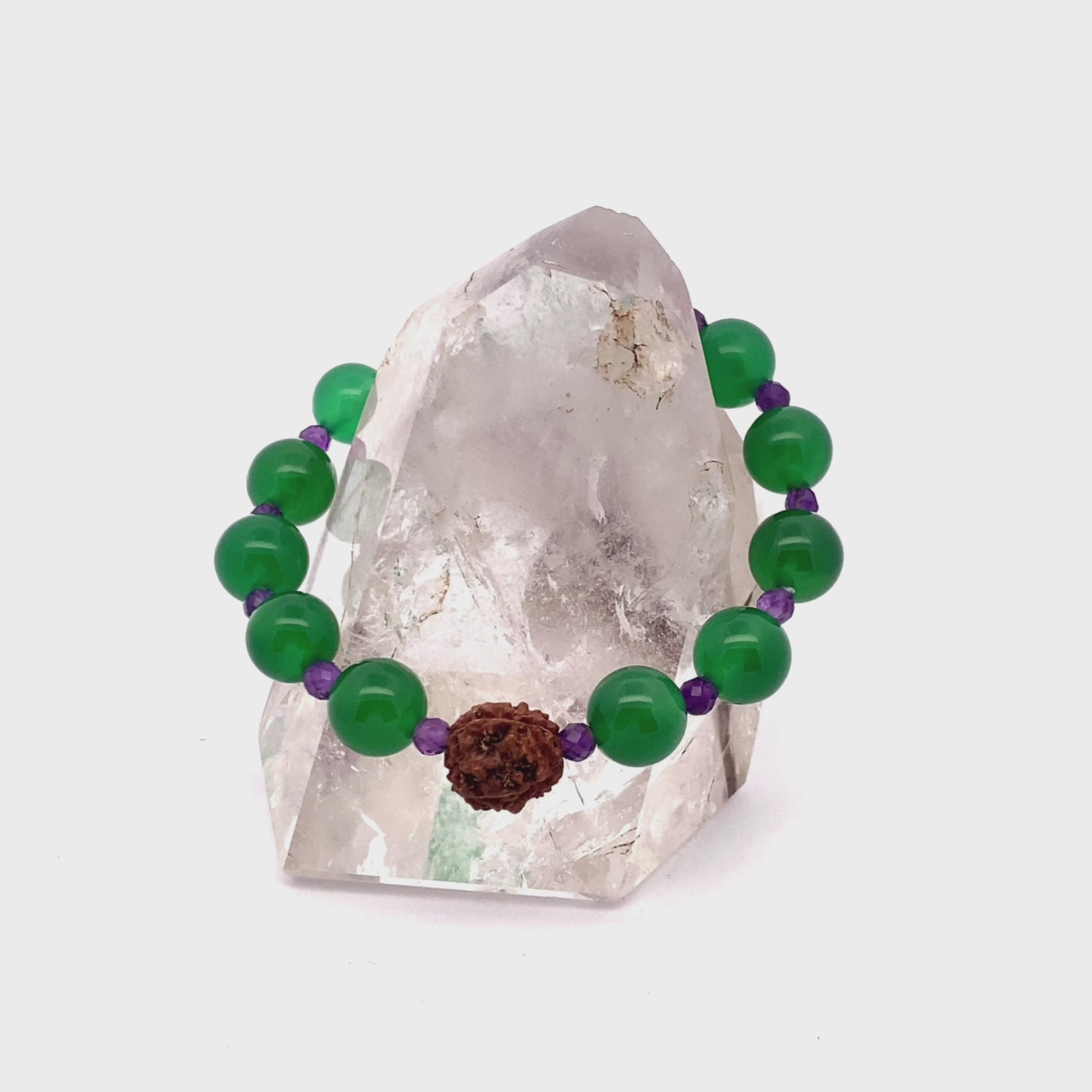 Enhance emotional adaptability and spiritual clarity with the Bringing Emotional Flexibility Bracelet, a beautifully handcrafted piece designed to activate and harmonize the Heart and Third Eye Chakras. Featuring a transformative combination of Green Agate, Amethyst, and Rudraksha, this bracelet promotes emotional resilience, intuition, and inner harmony.