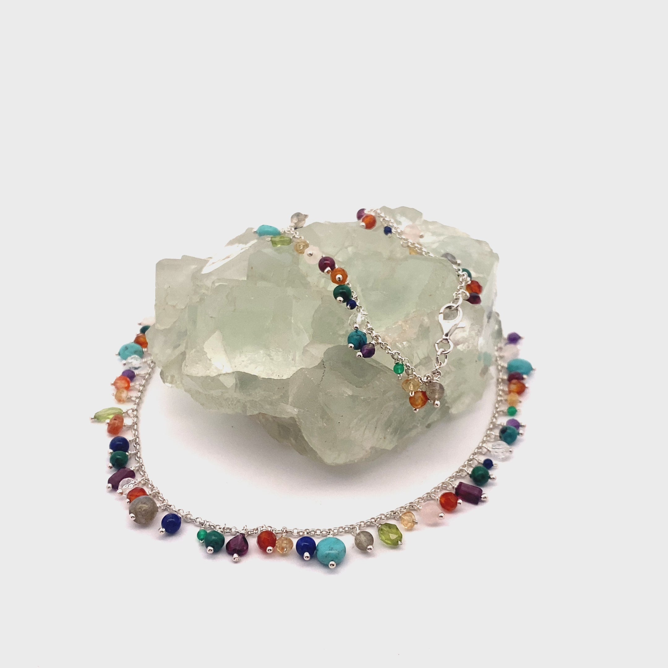 Achieve balance and inner harmony with the Chakra Harmony Short Necklace, a beautifully crafted piece designed to align and activate all seven chakras. Featuring a transformative blend of Crystal Clear Quartz, Amethyst, Citrine, Carnelian, Turquoise, Malachite, Sandstone, Lapis Lazuli, Labradorite, Rose Quartz, Peridot, Garnet, and Green Agate, this necklace enhances energy flow, emotional clarity, and spiritual connection.