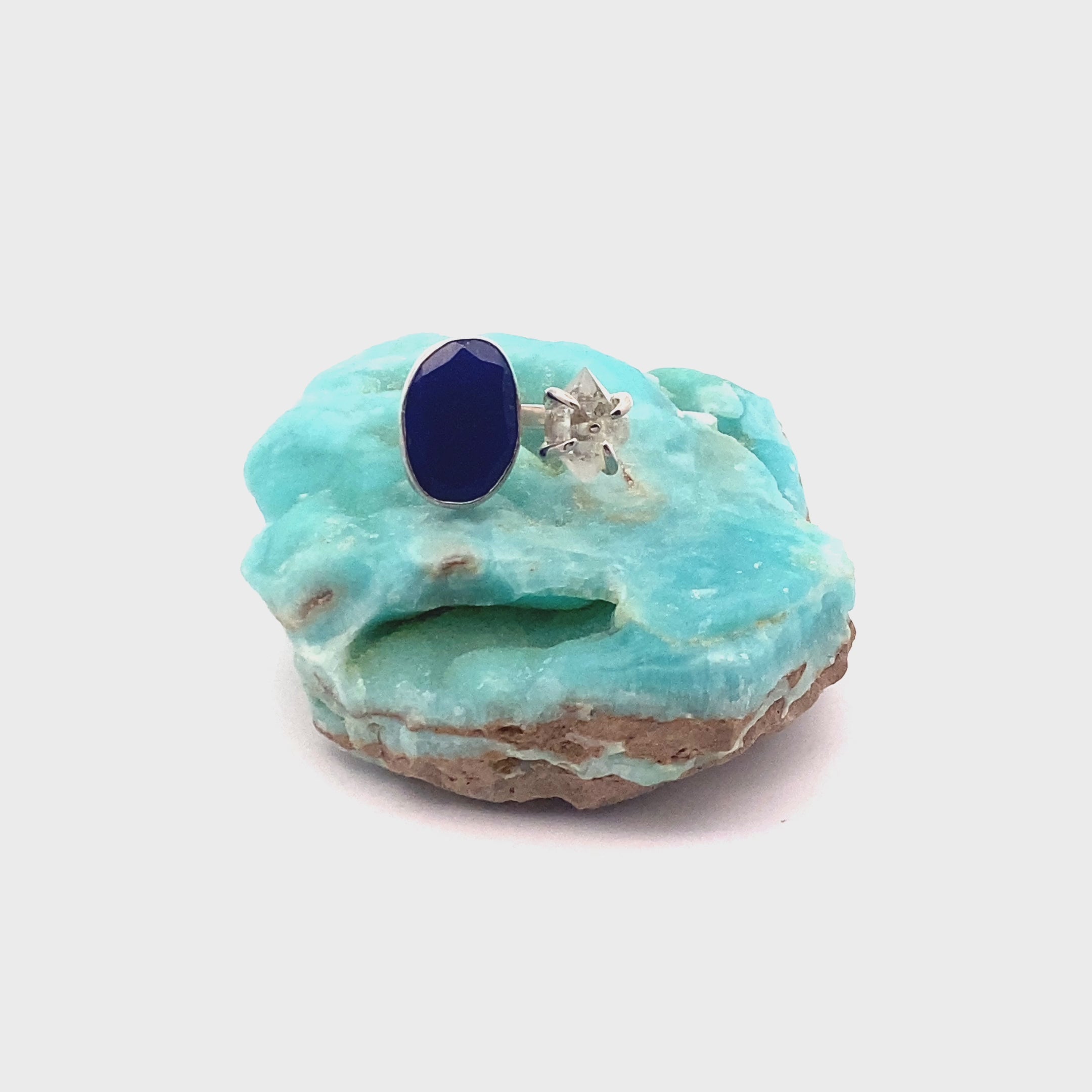 Enhance your throat chakra with our Clairvoyance ring, handcrafted with Lapis Lazuli, Herkimer Diamond for spiritual balance and healing. This ring promotes throat chakra alignment and encourages emotional stability and well-being.