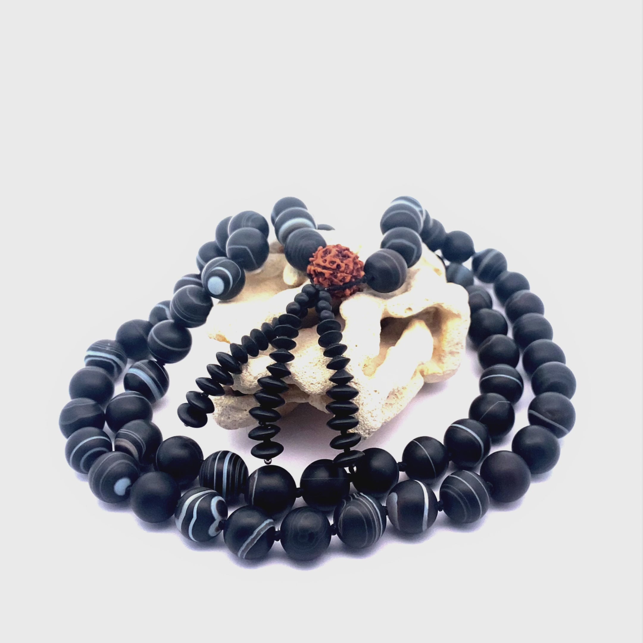 • Gemstones: A high-vibrational combination of Stripe Agate, Onyx Frosted, and Rudraksha, chosen for their grounding, stabilizing, and harmonizing properties.