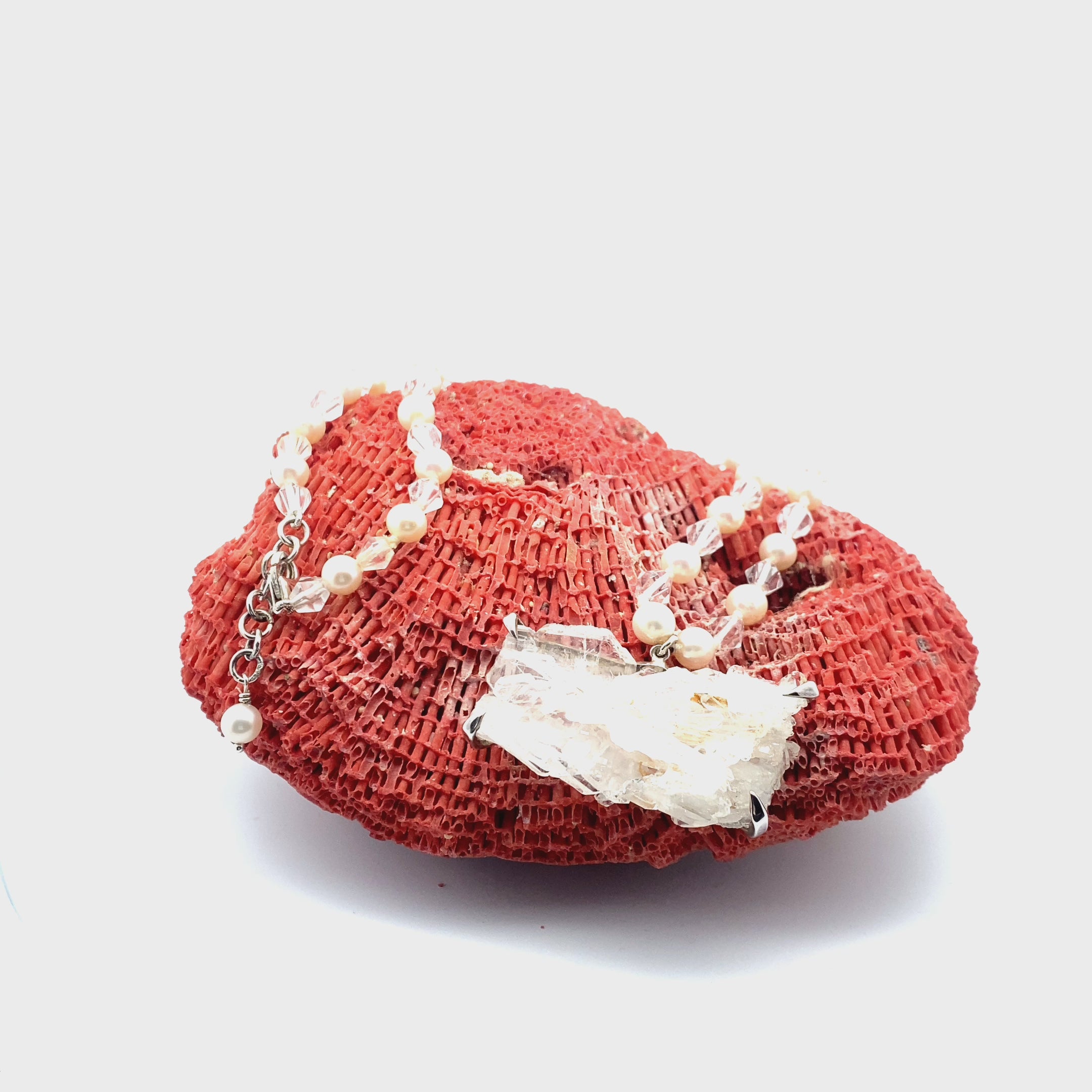 Key Features: • Gemstones: A high-vibrational combination of Crystal Clear Quartz, Pearls, and Faden Quartz, each chosen for their ability to amplify clarity, nurture emotional balance, and align the Crown Chakra. • Chakra Activation: Activates and harmonizes the Crown Chakra, clearing energy blockages to foster inner peace, clarity, and emotional stability. • Traditional Craftsmanship: Hand-knotted on artificial thread and finished with a premium 925 sterling silver clasp and chain, ensuring lasting durability and a refined, spiritual aesthetic. • Versatile Design: Ideal for meditation, energy work, or as a meaningful everyday accessory that supports emotional balance and spiritual clarity.