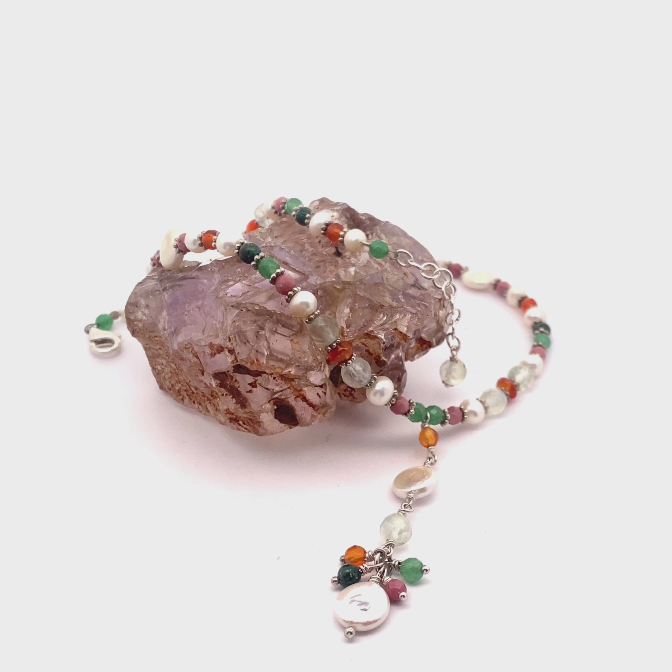 Key Features: • Gemstones: A high-vibrational mix of Prehnite, Carnelian, Rhodonite, Pearls, Chrysocolla, Aventurine, and Silver Beads, each selected for their potent ability to activate and harmonize the Sacral Chakra. • Chakra Activation: Clears emotional blockages and enhances creative energy, sensuality, and personal empowerment. • Traditional Craftsmanship: Expertly handcrafted with durable beads wire and finished with premium 925 sterling silver hardware, ensuring lasting durability and a refined, spiritual aesthetic. • Versatile Design: Ideal for meditation, energy work, or as a meaningful everyday accessory that celebrates feminine energy and inspires creative expression.