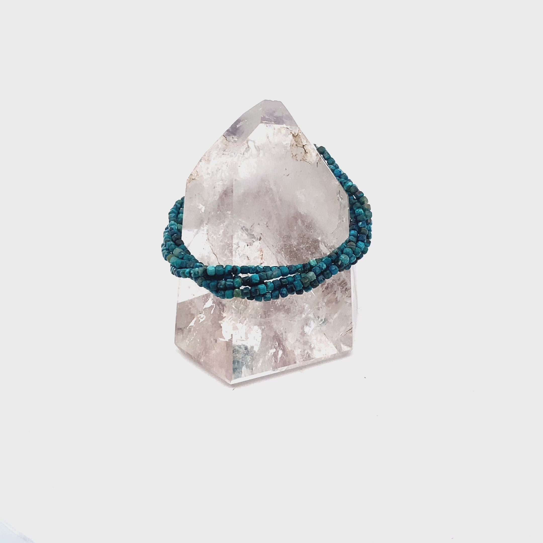 Enhance your throat abd heart chakra alignment with our Energizer bracelet, handcrafted with Chrysocolla for spiritual balance and healing. This bracelet encourages emotional stability and well-being.