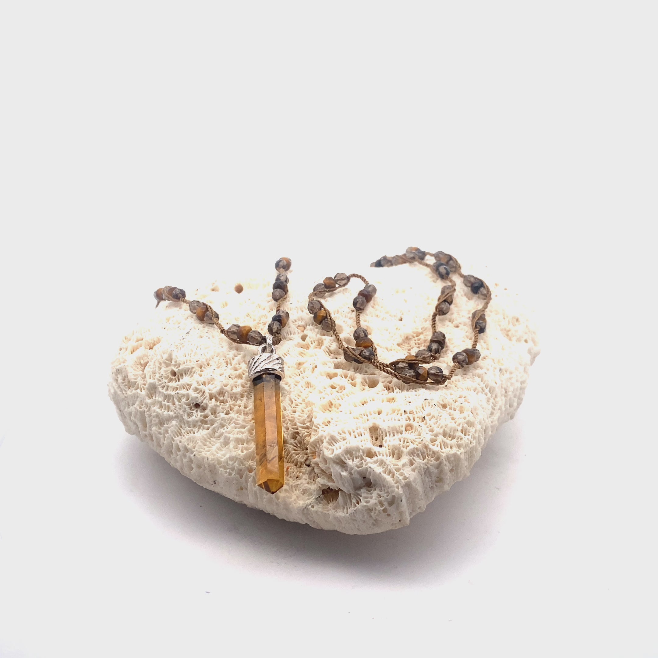 • Gemstones: A high-vibrational combination of Tiger Eye, Smokey Quartz, and a Pendant Citrine, chosen for their ability to enhance confidence, clarity, and vitality.