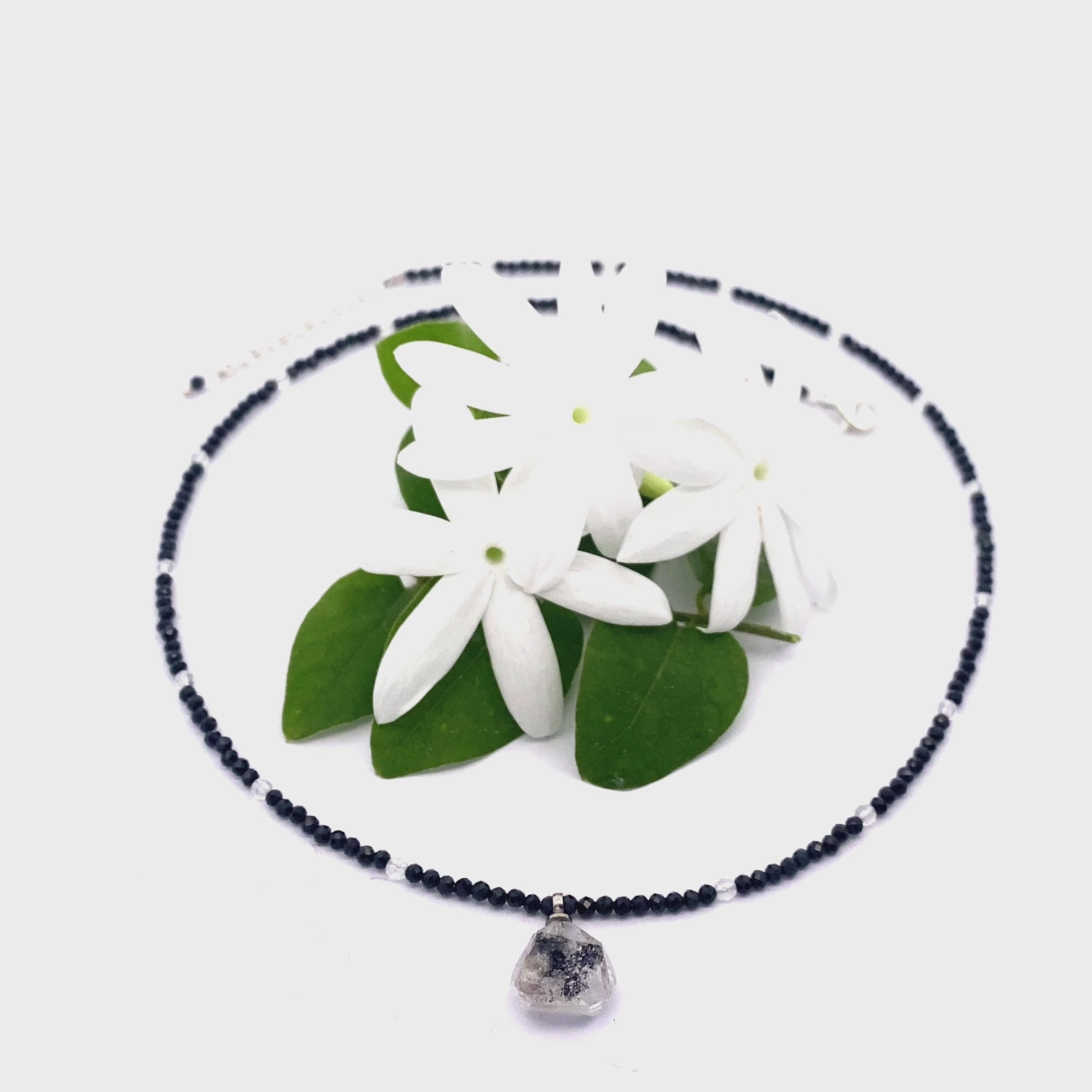 Revitalize your energy and ground your spirit with the Energy Renewal Short Necklace, a masterfully handcrafted accessory designed to activate and empower your Root Chakra. Featuring a transformative blend of Black Spinel, Crystal Clear Quartz, and Herkimer Diamond, this necklace is expertly created to clear energy blockages, dispel negativity, and infuse your foundation with renewed vitality. Crafted with durable beads wire and accented with a premium 925 sterling silver clasp and chain, its timeless design elegantly fuses ancient spiritual wisdom with modern style—making it the perfect companion for meditation, energy work, or daily wear.