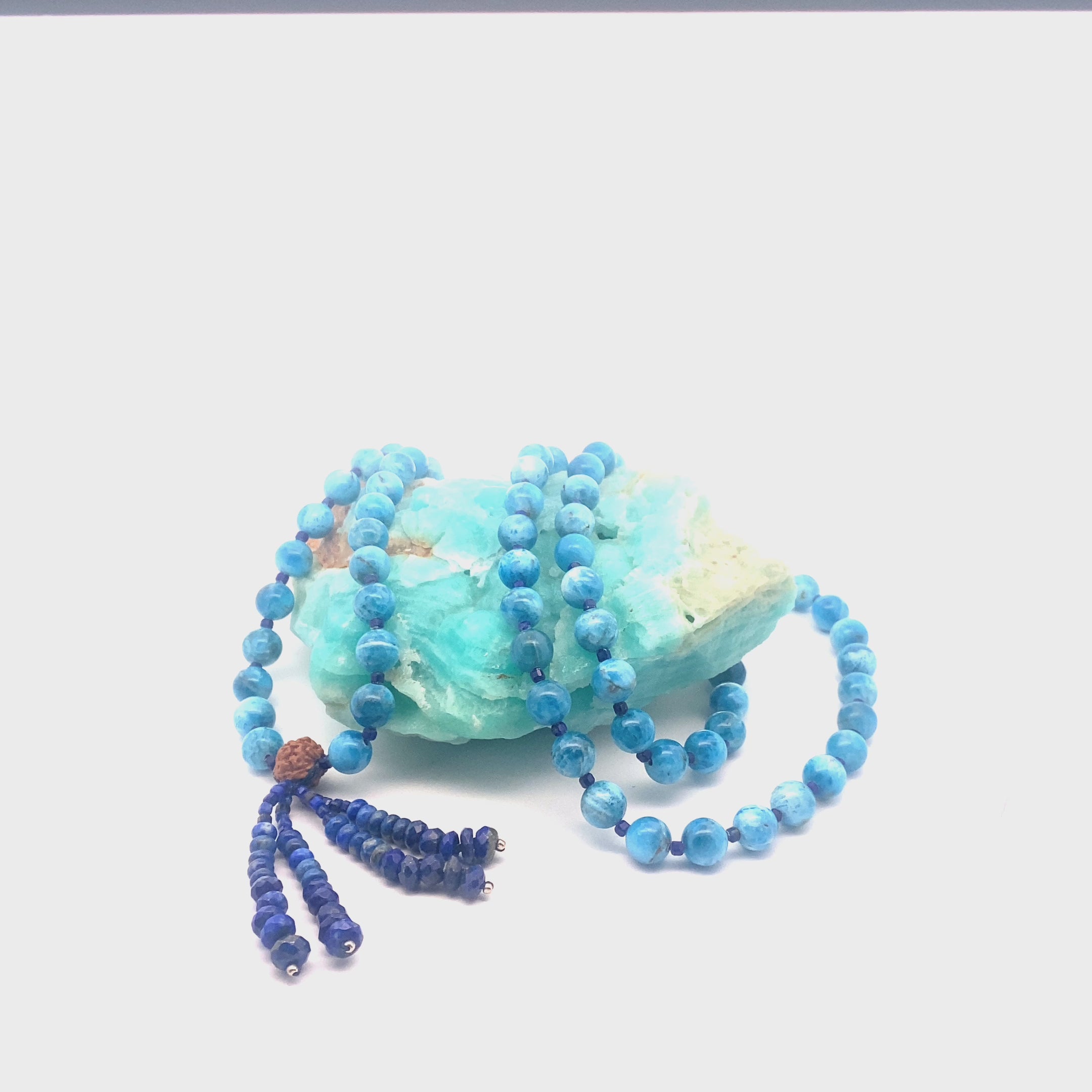 - Gemstone(s): Lapis Lazuli, Blue Apatite from Madagascar, Rudraksha