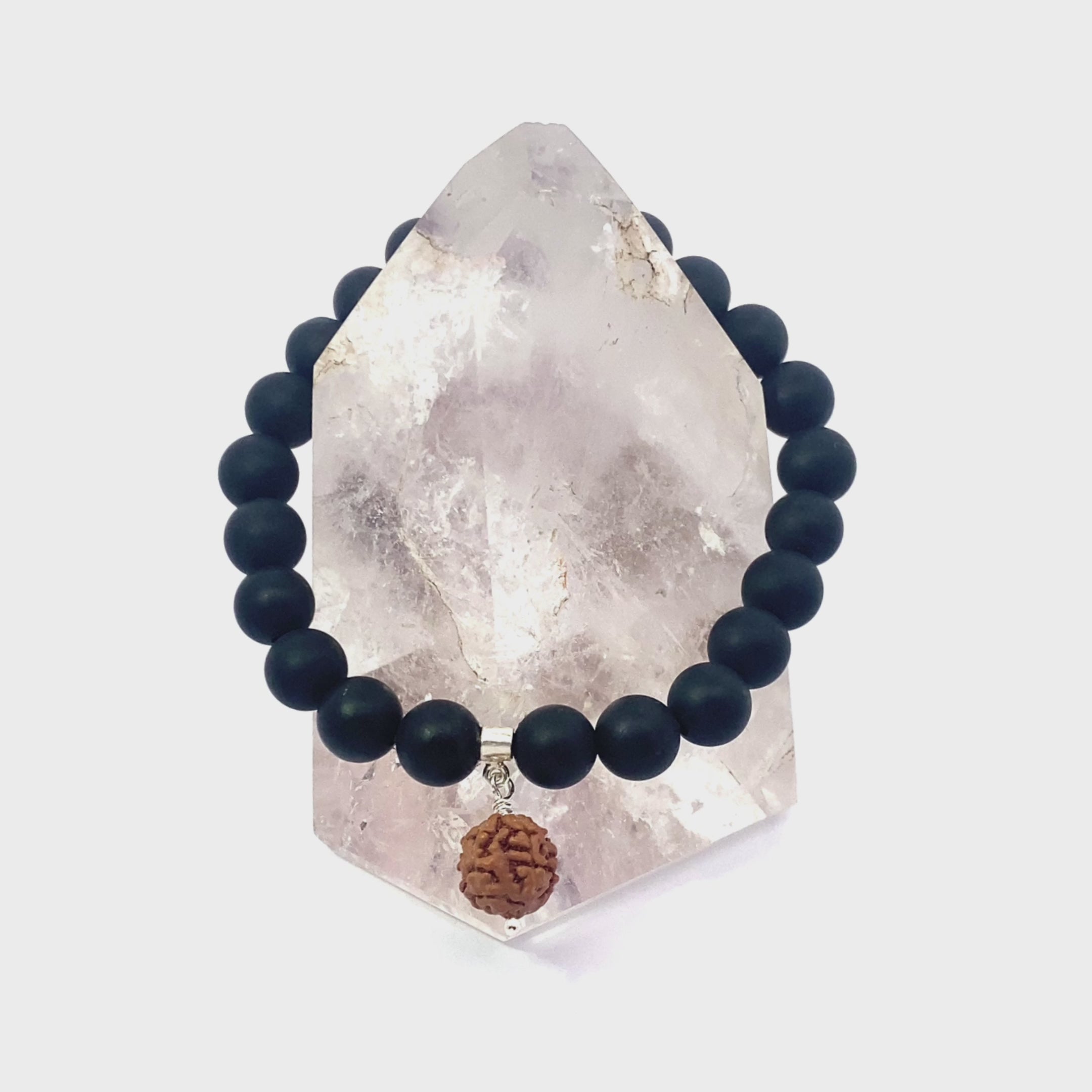Key Features: • Gemstones: A high-vibrational combination of Onyx Frosted and Rudraksha, each chosen for their powerful grounding and protective properties. • Chakra Protection: Activates and fortifies the Root Chakra, clearing energy blockages and promoting emotional resilience. • Traditional Craftsmanship: Expertly handcrafted on a flexible elastic band, ensuring lasting comfort and a refined, spiritual aesthetic. • Versatile Design: Ideal for meditation, energy work, or as a meaningful everyday accessory that grounds your spirit and empowers your inner strength.