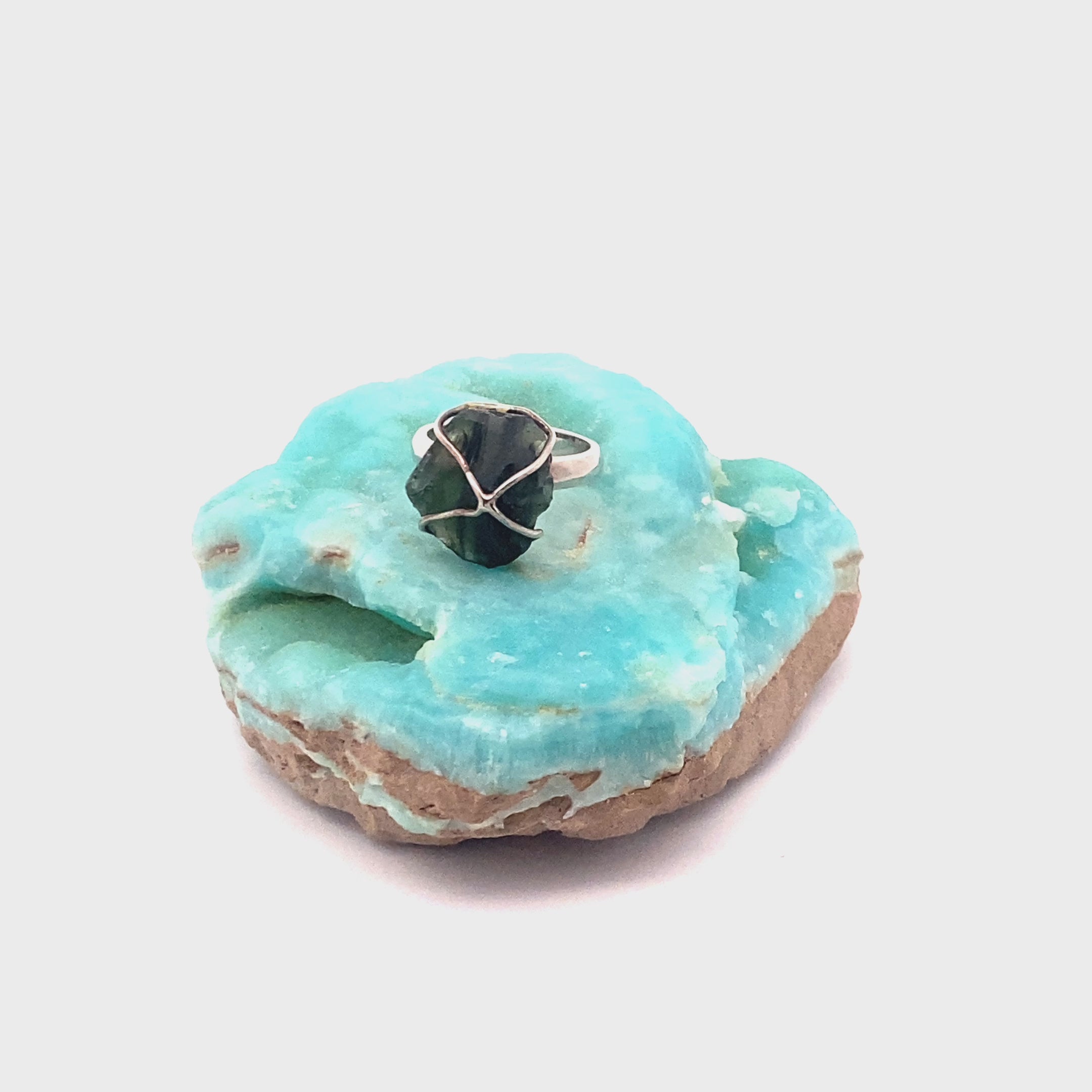 Enhance your heart chakra with our Good Fortune - Fertility ring, handcrafted with Moldavite for spiritual balance and healing. This ring promotes heart chakra alignment and encourages emotional stability and well-being.