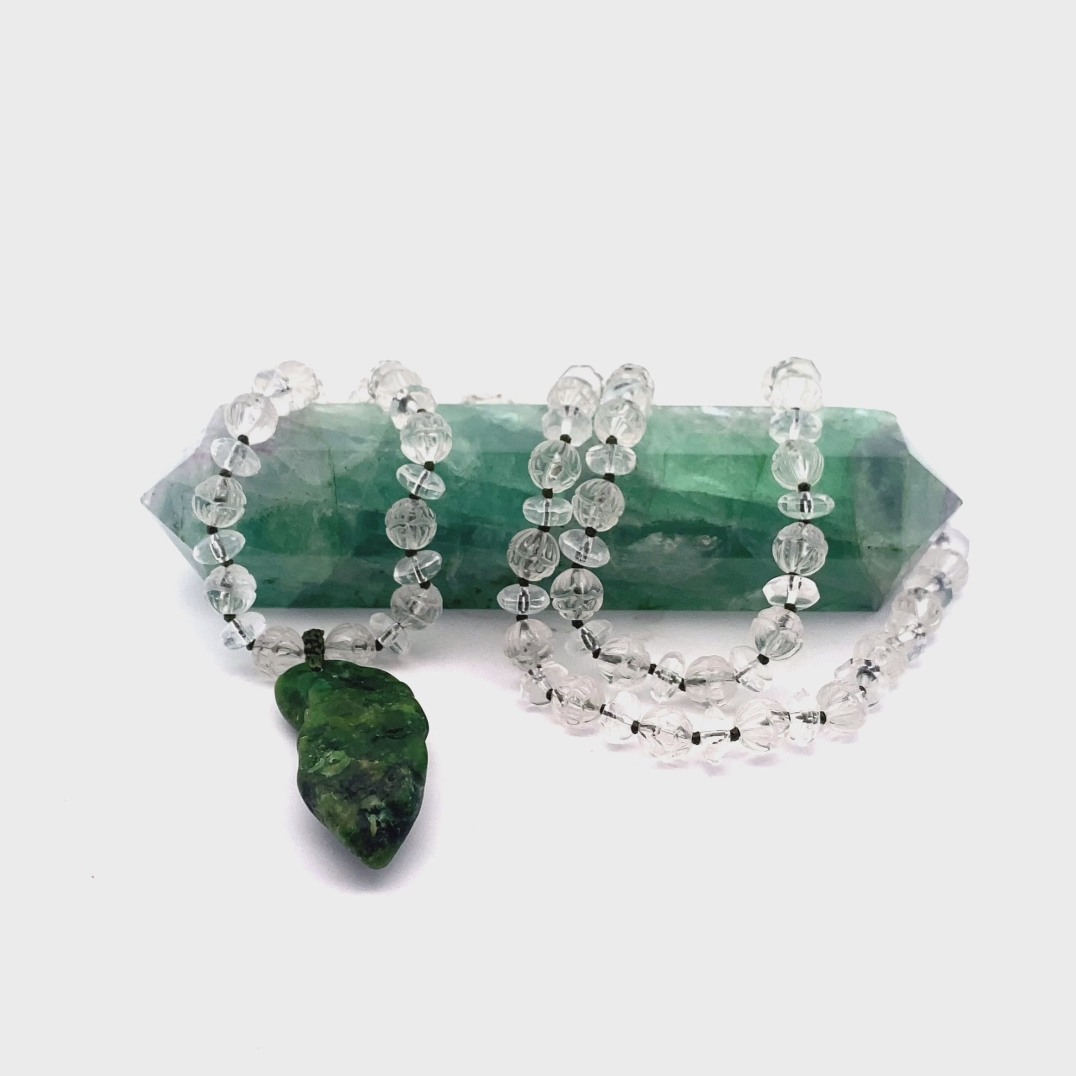 Open your heart and elevate your spirit with the Increase Compassion Long Necklace, a beautifully handcrafted accessory designed to activate and balance both the Crown and Heart Chakras. Featuring a powerful combination of Crystal Clear Quartz and Diopside, this necklace is expertly crafted to clear emotional blockages, promote unconditional love, and strengthen your connection to higher consciousness. Strung on durable artificial thread, its timeless design seamlessly blends ancient spiritual wisdom with modern elegance—making it the perfect companion for meditation, energy healing, or as a meaningful daily accessory.