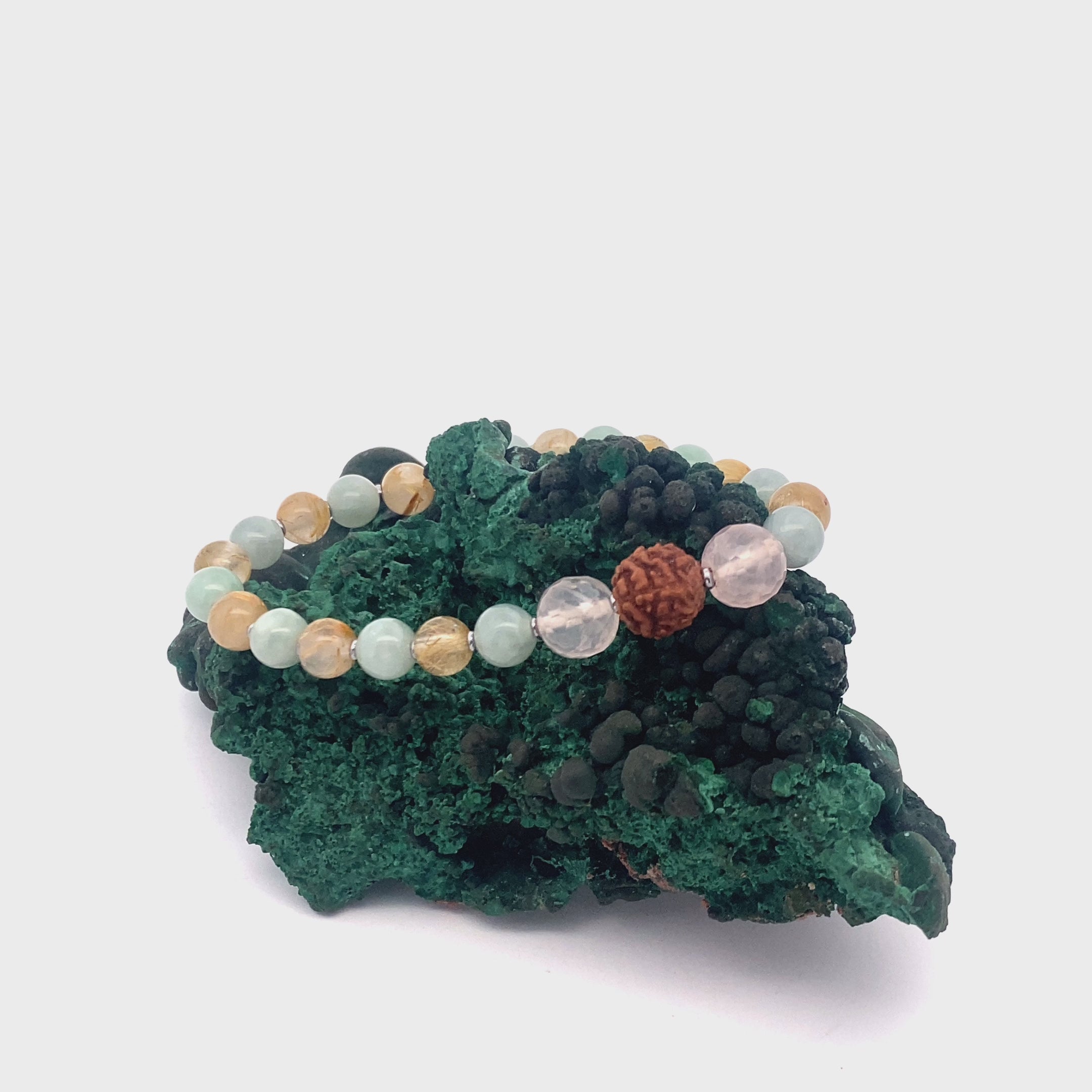 Invite love, prosperity, and inner harmony with the Laksmi Bracelet, a beautifully handcrafted piece designed to activate and align the Heart Chakra. Featuring a nurturing blend of Rose Quartz, Jade, Rutilated Quartz, Hematite, and Rudraksha, this bracelet promotes emotional healing, balance, and abundance.