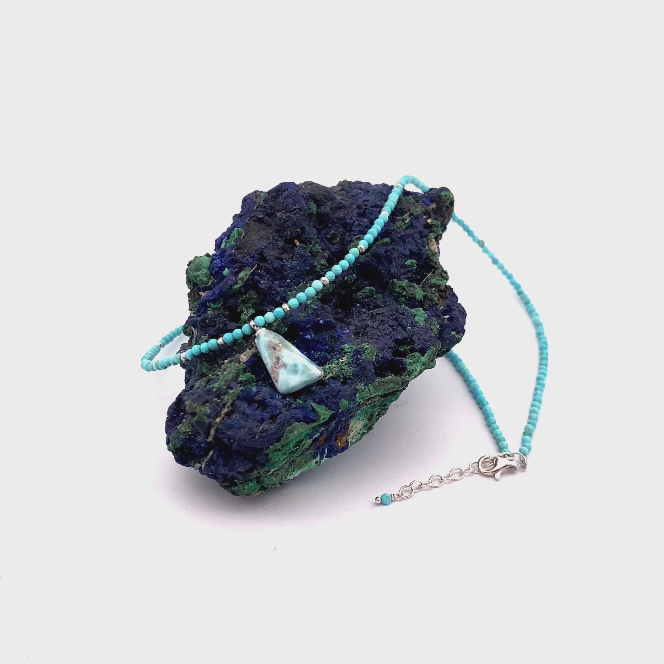 Embrace love and inner peace with the Love and Peace Short Necklace, a masterfully handcrafted accessory designed to activate and balance your Throat Chakra. Featuring a harmonious blend of Turquoise, Silver Thay Beads, and Larimar, this necklace is expertly created to clear energy blockages, promote clear communication, and nurture emotional balance. Crafted with durable beads wire and accented with a premium 925 sterling silver clasp and chain, its timeless design seamlessly unites ancient spiritual wisdom with modern elegance—making it the perfect companion for meditation, energy work, or daily wear.
