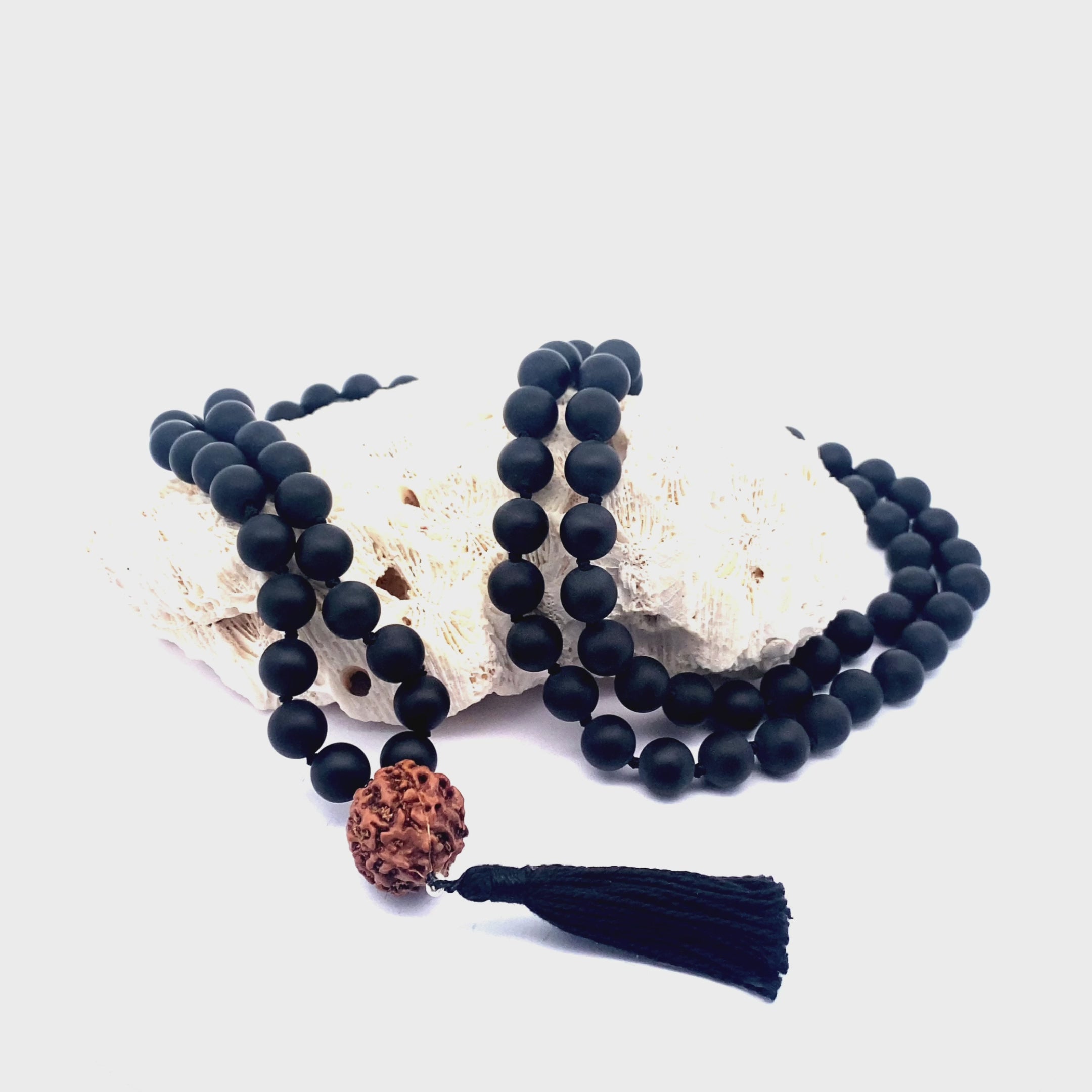 • Gemstones: A high-vibrational combination of Onyx Frosted and Rudraksha, chosen for their powerful grounding and protective properties.
