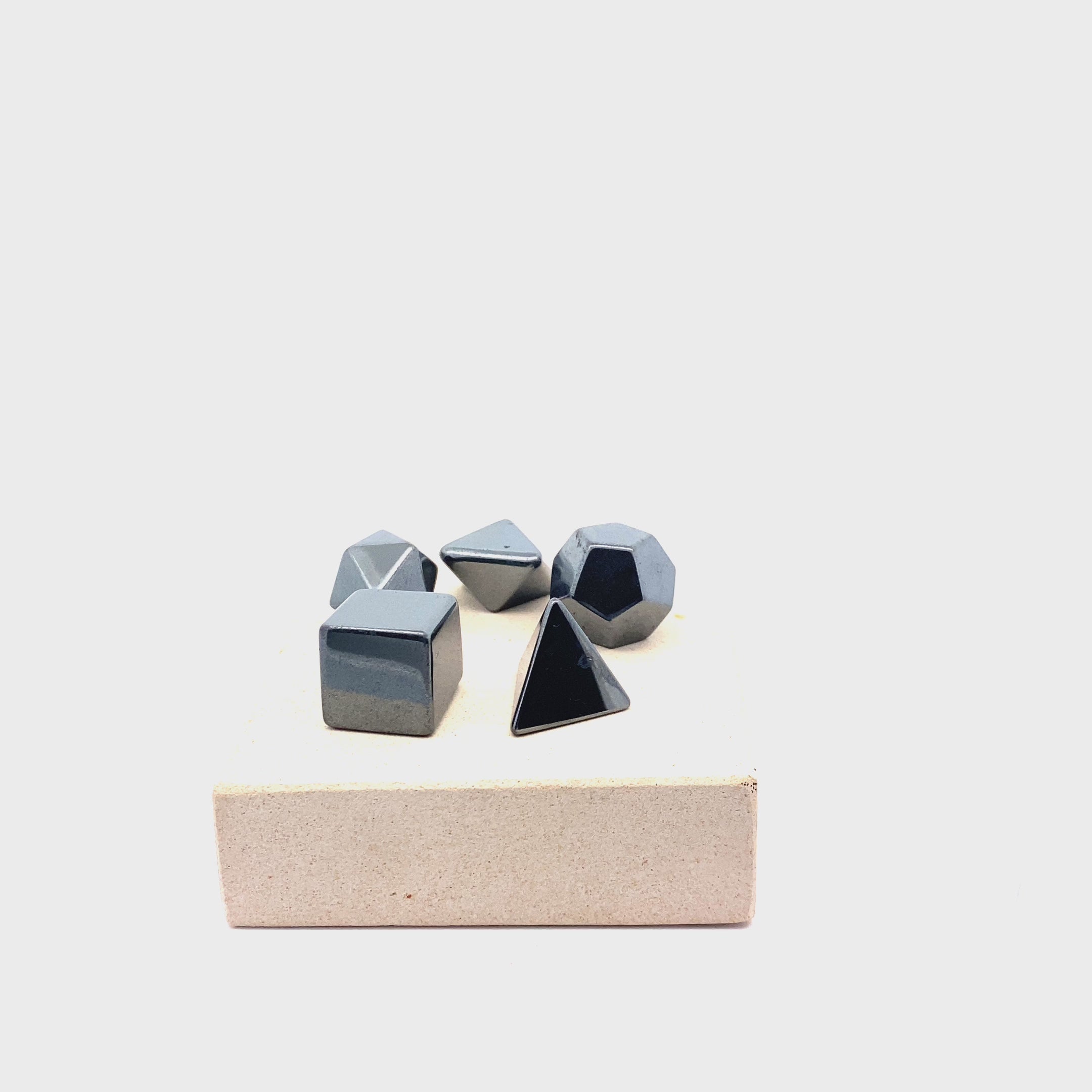 Platonic Solid, Hematite shaped into sacred geometric shapes, in hard paper box