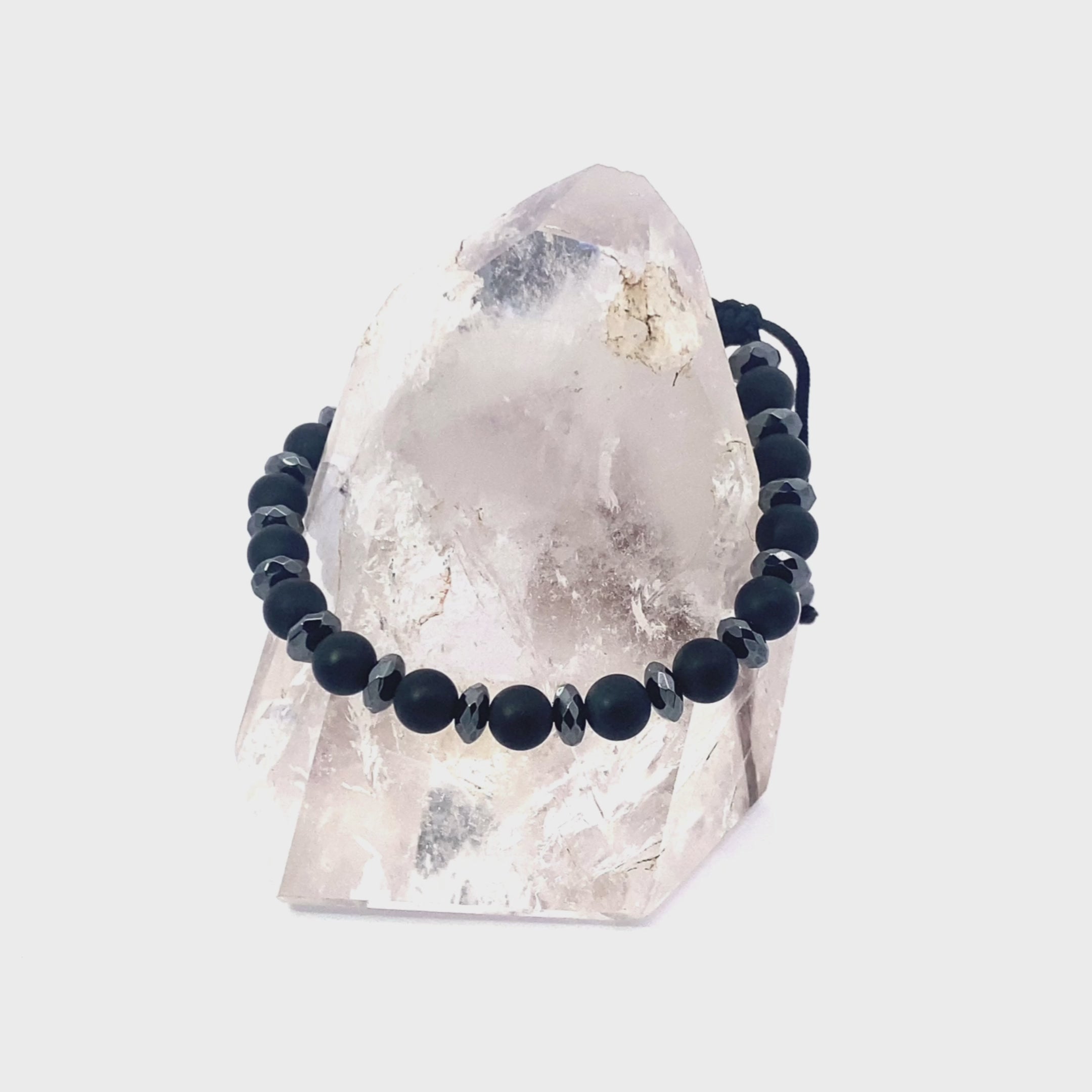 Elevate your spirit and embrace a life of optimism with the Positive Attitude Bracelet, a meticulously handcrafted accessory designed to activate and balance your Root Chakra. This striking bracelet features a dynamic duo of high-vibrational gemstones—Onyx Frosted and Hematite—each renowned for their grounding and protective properties. Expertly strung on durable artificial string, this bracelet not only enhances your energy flow but also inspires a steadfast, positive mindset, making it the perfect companion for meditation, daily wear, and spiritual transformation.