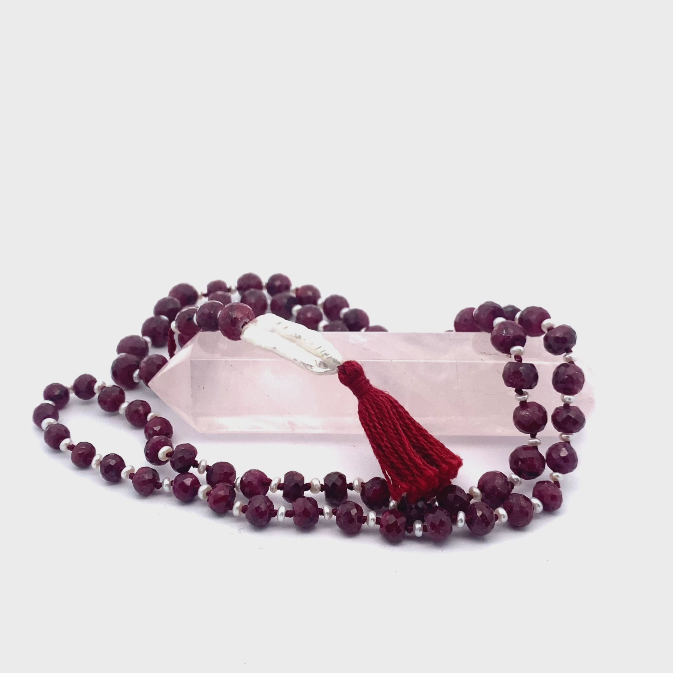 • Gemstones: A high-vibrational combination of Ruby, Pearls, and Biwa Pearl, each selected for their ability to empower the Root Chakra and enhance inner grounding.