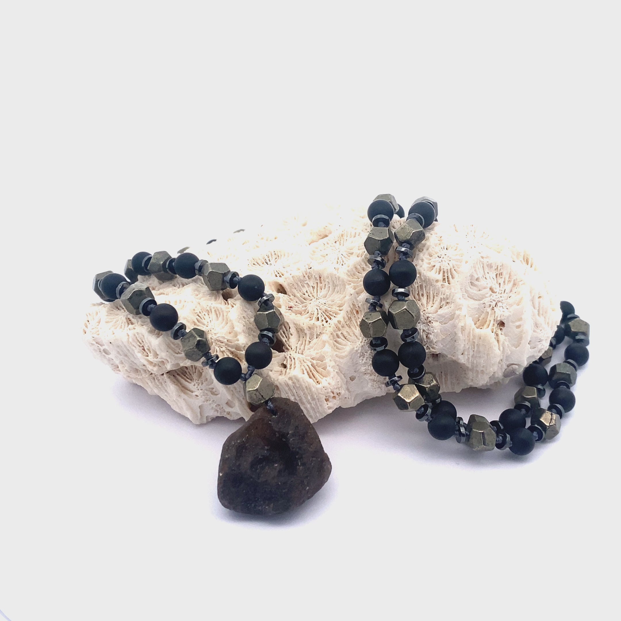• Gemstones: A high-vibrational combination of Onyx Frosted, Pyrite, Hematite, and Tektite, each selected for their powerful grounding, protective, and empowering properties.