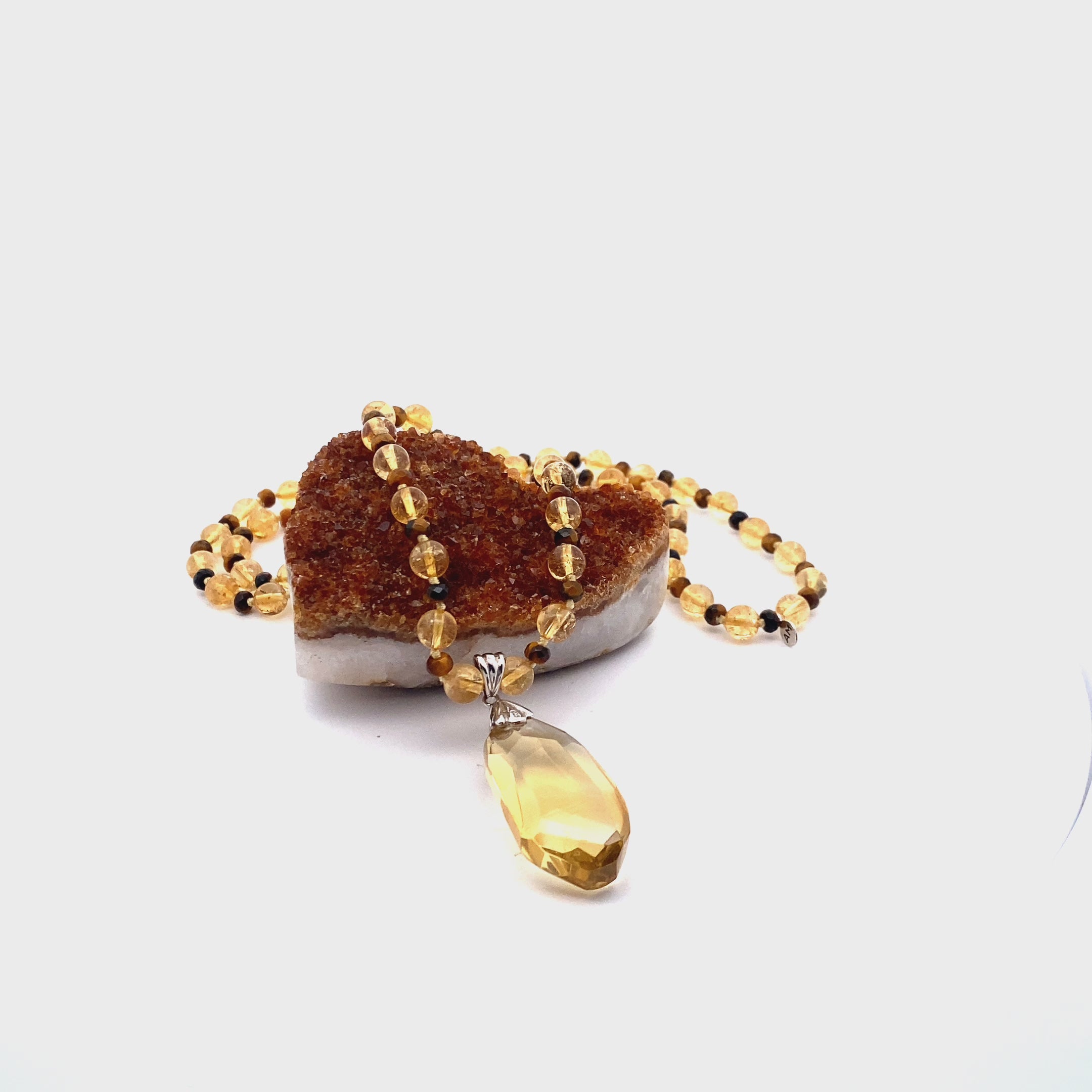 Enhance your solar plexus chakra with our Prosperity & Success necklace, handcrafted with Tiger Eye, Citrine, Pendant Citrine for spiritual balance and healing. This long necklace promotes solar plexus chakra alignment and encourages emotional stability and well-being.