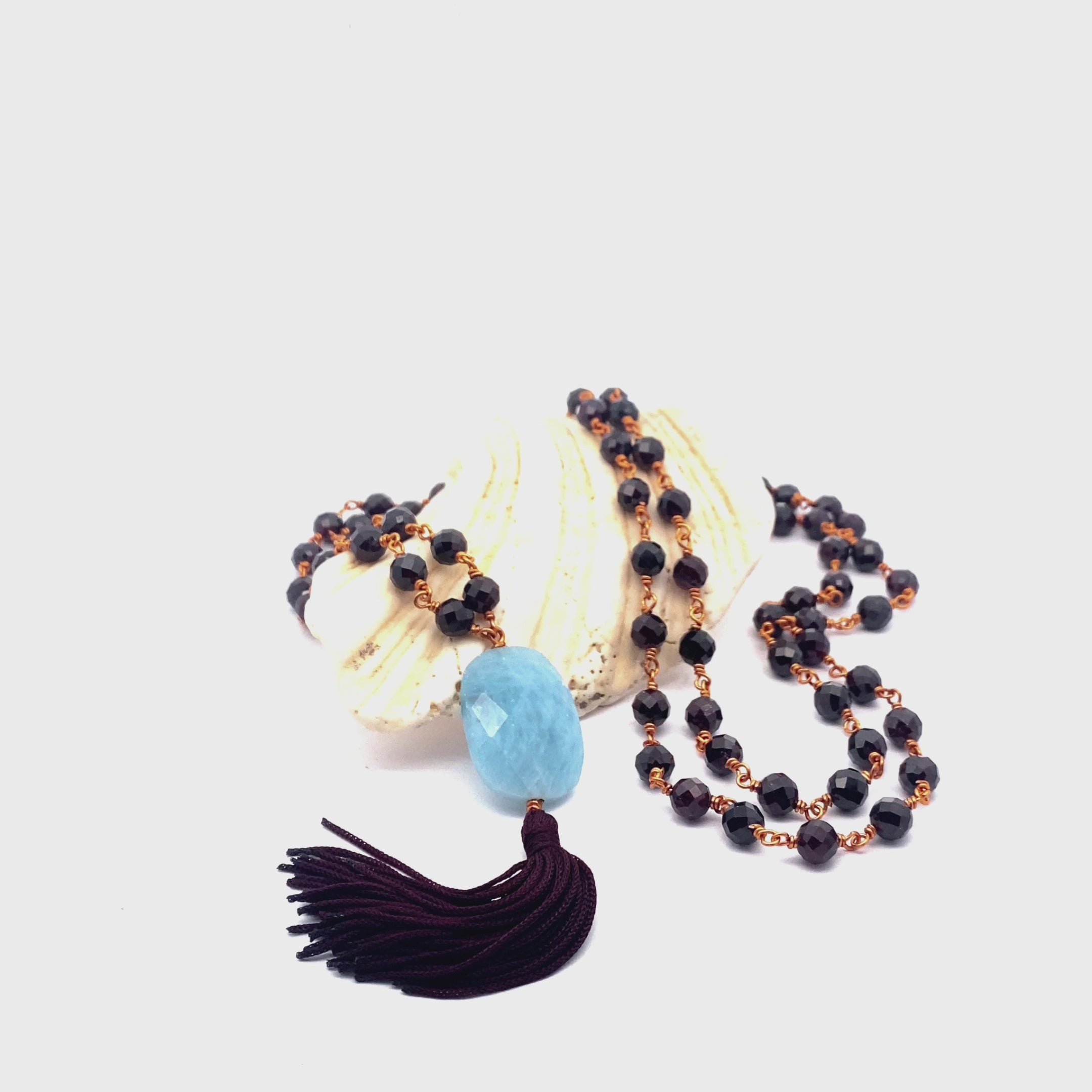 Refresh your energy and ground your spirit with the Regenerating Mala Copper Wire, a masterfully handcrafted accessory designed to activate and balance your Root Chakra. Featuring a dynamic blend of Garnet and Aquamarine, this mala is expertly created to clear energy blockages, encourage inner renewal, and promote overall vitality and stability. Strung on durable copper wire with a stylish tassel, its timeless design seamlessly merges ancient spiritual wisdom with modern elegance—making it the perfect companion for meditation, energy work, or as a meaningful everyday accessory.