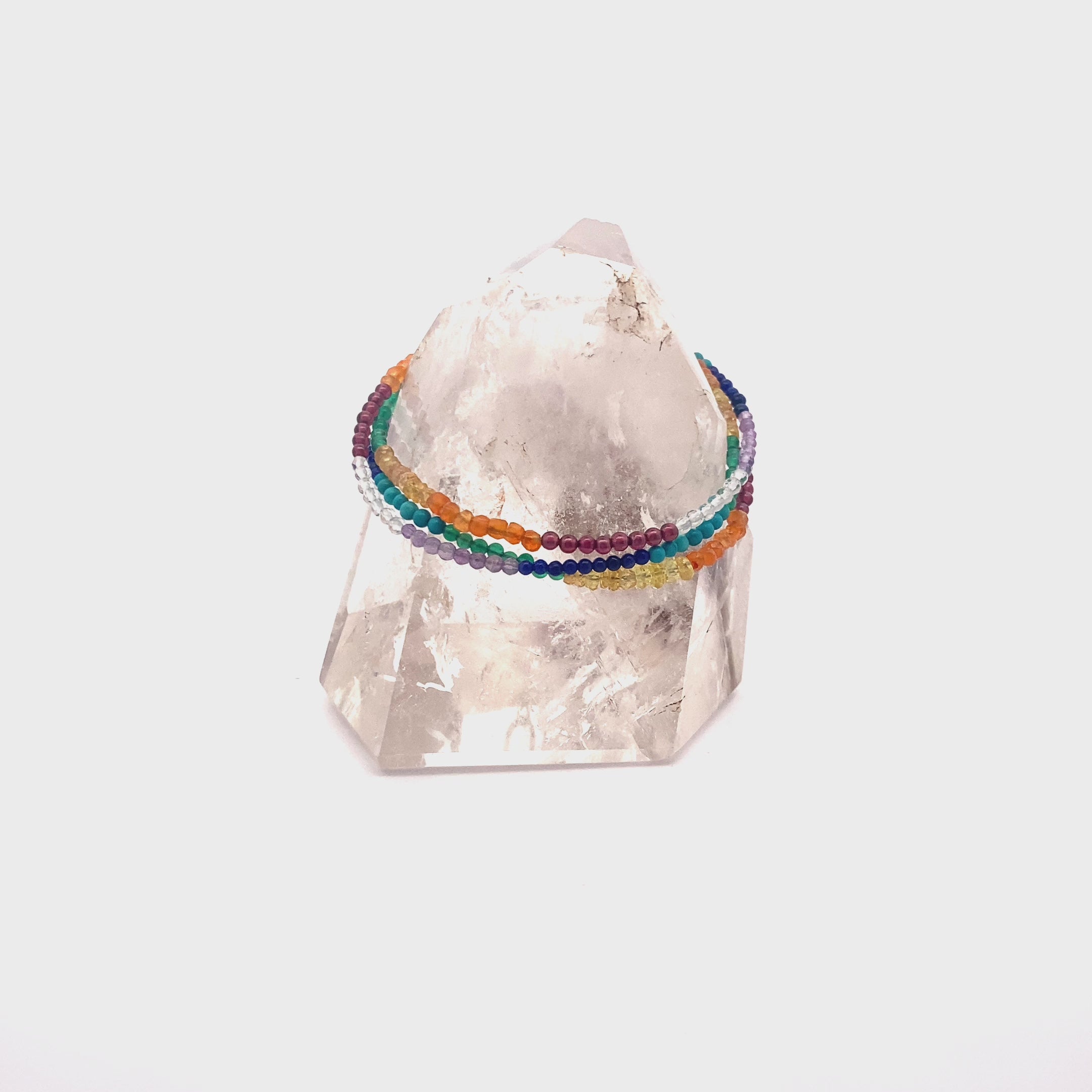 Elevate your energy with the 7 Chakra 2mm Bracelet, a meticulously crafted piece designed to harmonize and activate all seven chakras. Featuring a transformative combination of Garnet, Lapis Lazuli, Amethyst, Crystal Clear Quartz, Green Agate, Turquoise, Carnelian, and Yellow Sapphire, this bracelet enhances energy flow, emotional balance, and mindfulness.