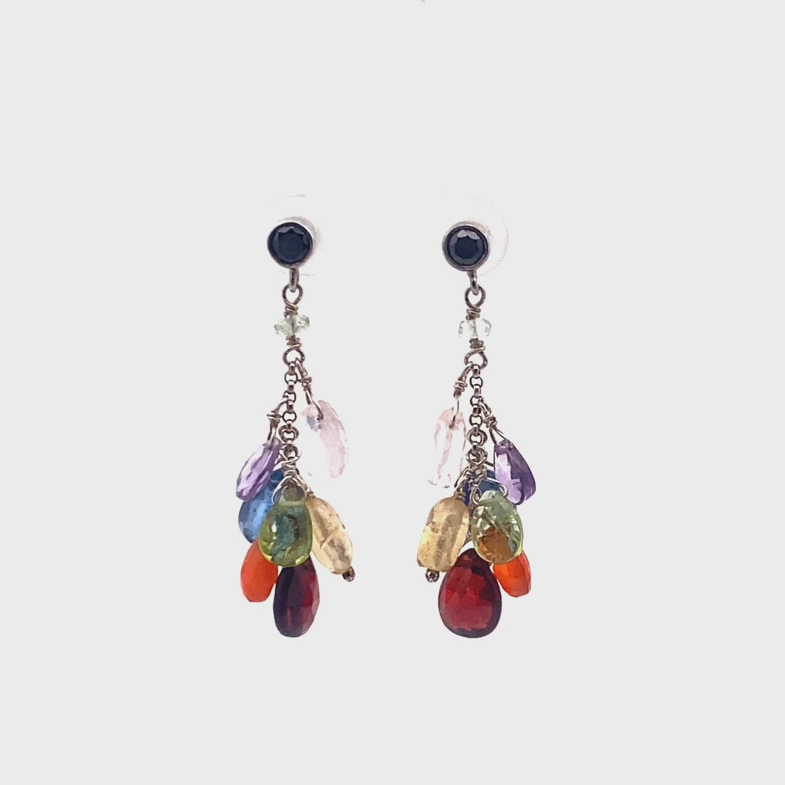 Embrace balance and positive energy with the 7 Chakra Pendant Drops Silver Earrings, a stunning pair designed to harmonize all seven chakras. Featuring a radiant selection of Rose Quartz, Amethyst, Citrine, Carnelian, Kyanite, Garnet, Peridot, and Aquamarine, these earrings promote emotional clarity, confidence, and spiritual well-being.
