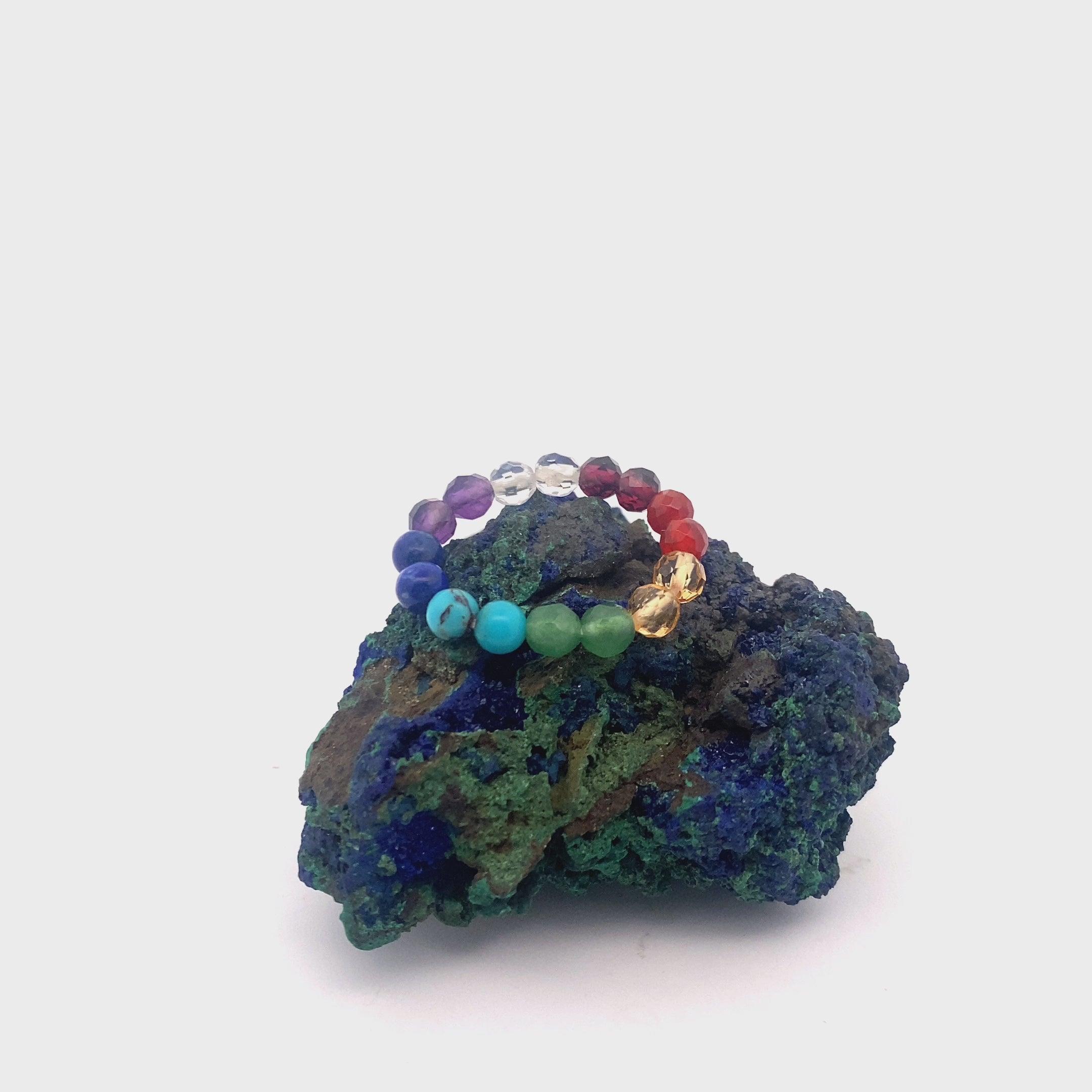 Enhance your energy flow and well-being with the 7 Chakra Elastic Ring, a beautifully designed piece that brings balance and harmony to all seven chakras. Featuring a radiant combination of Garnet, Carnelian, Citrine, Aventurine, Turquoise, Lapis Lazuli, Amethyst, and Crystal Clear Quartz, this ring promotes emotional stability, clarity, and inner peace.