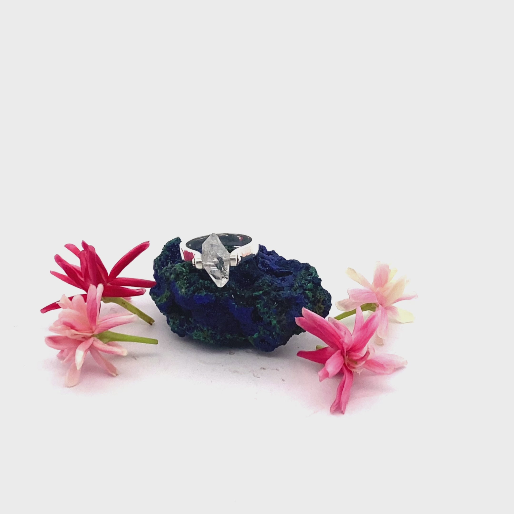 Soul Guidance Single Herkimer Diamond Silver Ring