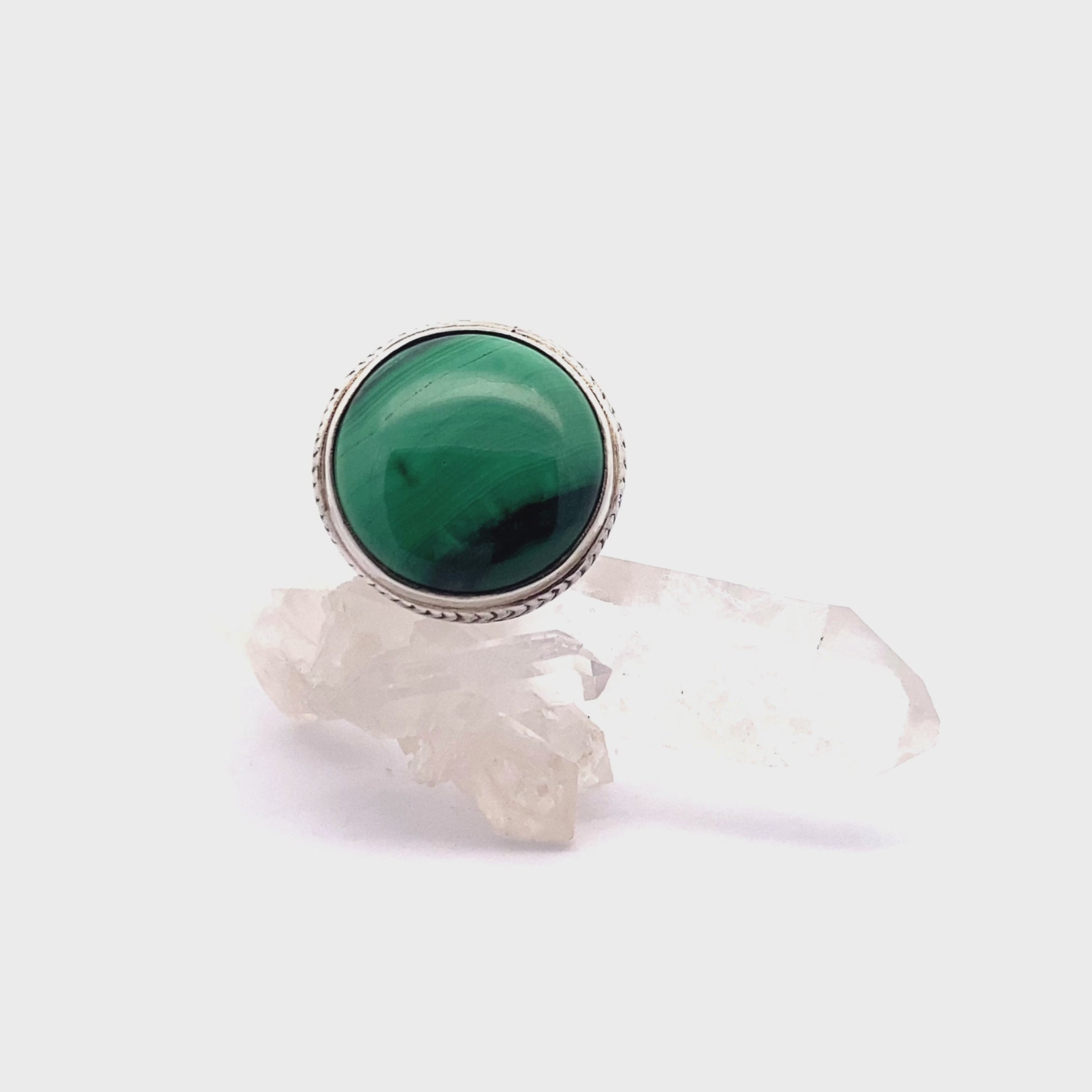 Open your heart and embrace intuitive wisdom with the Spiritual Guidance Ring, a masterfully crafted accessory designed to activate and harmonize your Heart Chakra. Featuring a striking Malachite gemstone, this ring is expertly created to clear energy blockages, enhance emotional balance, and promote spiritual insight. Crafted using the unique cuttlefish bone casting technique in premium 925 sterling silver, its textured, organic finish adds depth and character, seamlessly merging ancient spiritual wisdom with modern artistry—making it the perfect companion for meditation, energy work, or as a meaningful statement piece for everyday wear.