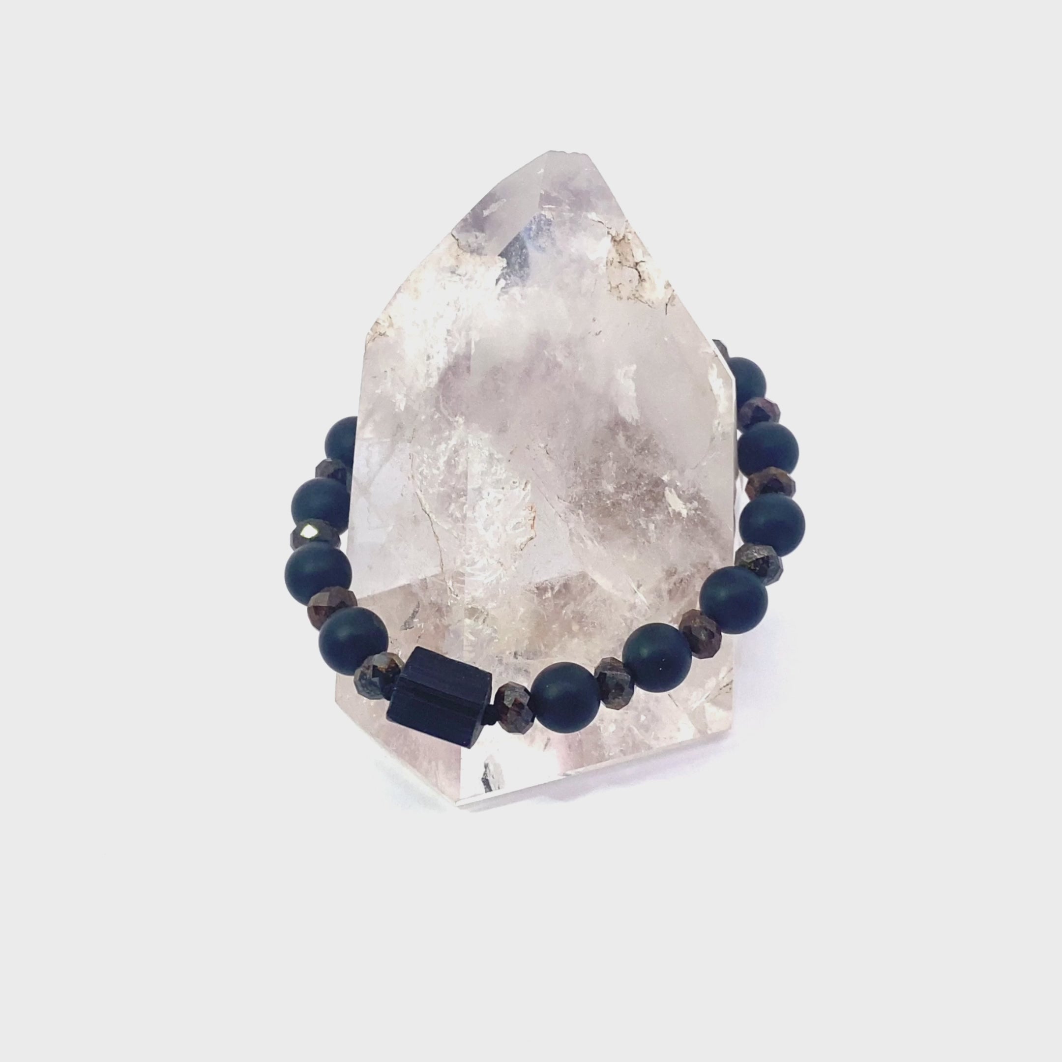 Fortify your energy field with the Super Protector Bracelet, a masterfully handcrafted accessory designed to activate and safeguard your Root Chakra. Featuring a dynamic blend of Onyx Frosted, Bronzite, and Black Tourmaline, this bracelet is expertly created to clear energy blockages, dispel negativity, and empower your foundation. Strung on durable artificial string, its timeless design elegantly fuses ancient spiritual wisdom with modern style—making it the perfect companion for meditation, energy work, or daily wear.