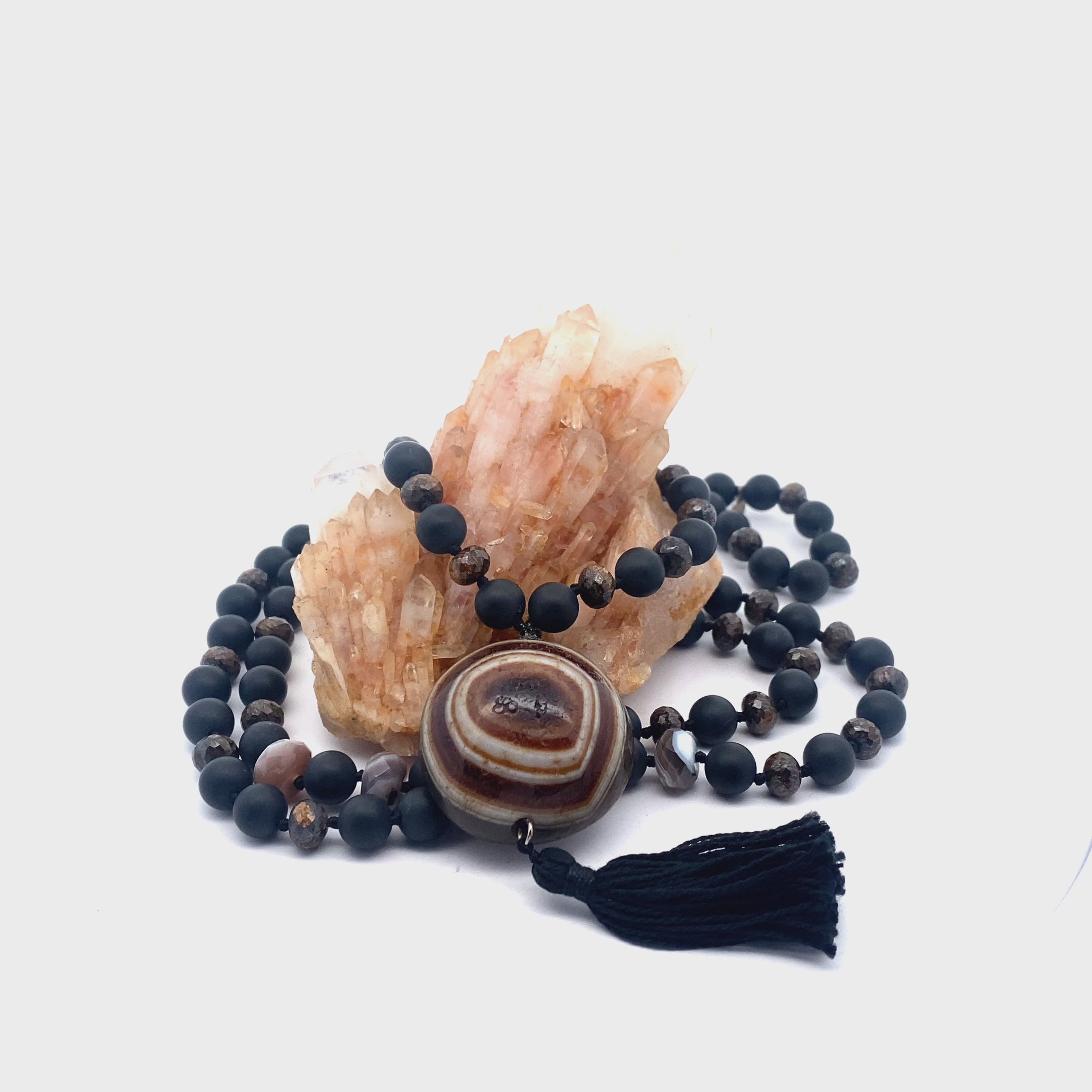 • Gemstones: A high-vibrational combination of Bronzite, Jasper, Onyx Frosted, and Eye Agate, each chosen for their powerful grounding, protective, and balancing properties.
