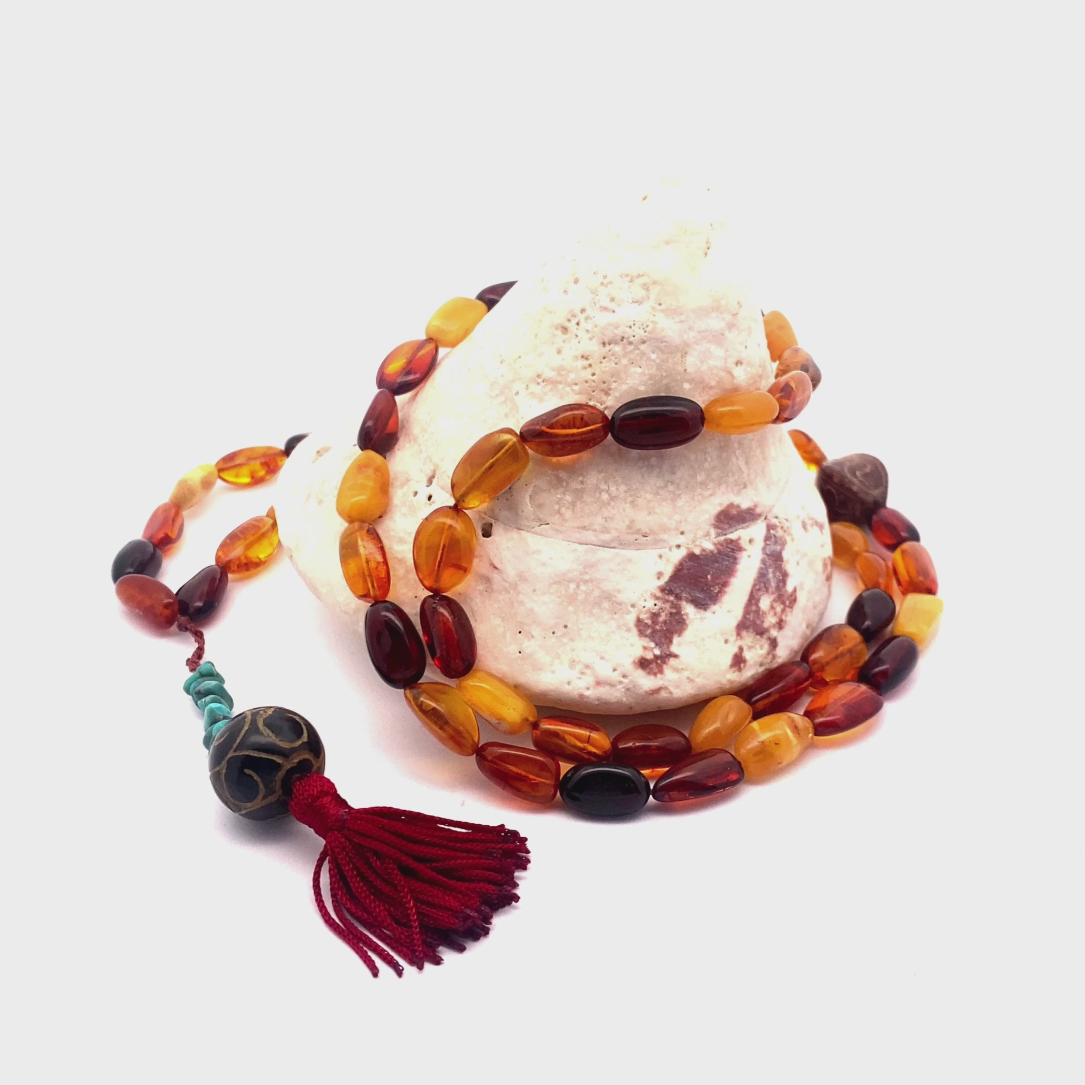 Ignite your inner fire and embrace personal power with the Tibetan Mala Wisdom, a beautifully handcrafted mala designed to activate and balance your Solar Plexus Chakra. Featuring a transformative blend of Amber, Turquoise, and a striking Pendant Chinese Jade, this mala is expertly crafted to clear energy blockages, boost self-confidence, and empower your inner strength. Strung on durable artificial thread with a tassel, its timeless design effortlessly fuses ancient Tibetan spiritual traditions with modern elegance—making it the perfect companion for meditation, mantra recitation, energy work, or as a meaningful everyday accessory.